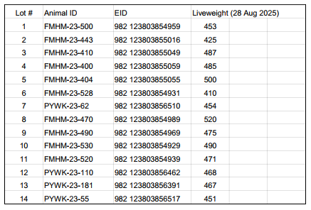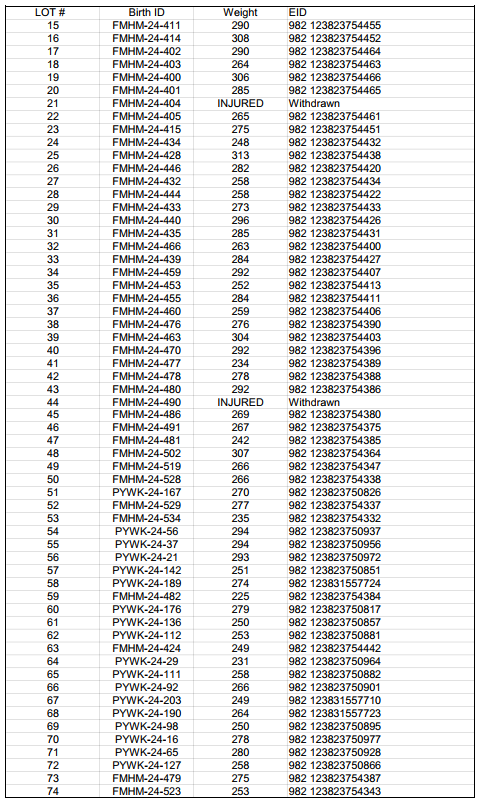 Lots 15–74: Elite R1 Jersey bulls, sold by Link Livestock (ave BW 254 up to BW 337)